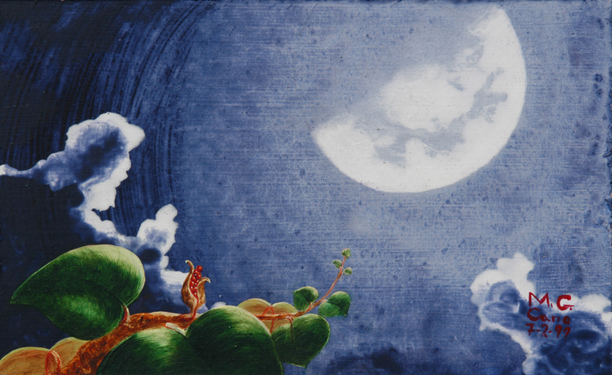 LA LUNA VII (La canción de Peiwoh), Acrílico – tabla 19 x 30 cm.