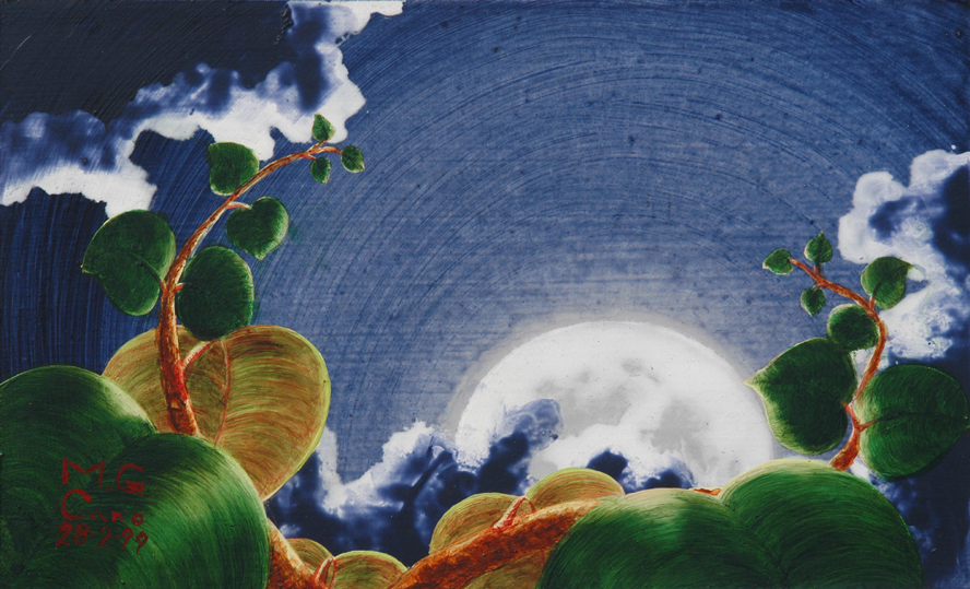 LA LUNA IX (La canción de Peiwoh), Acrílico – tabla 19 x 30 cm.