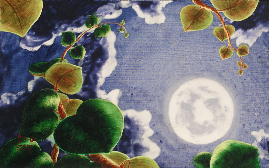 LA LUNA VI (La canción de Peiwoh), Acrílico – tabla 19 x 30 cm.