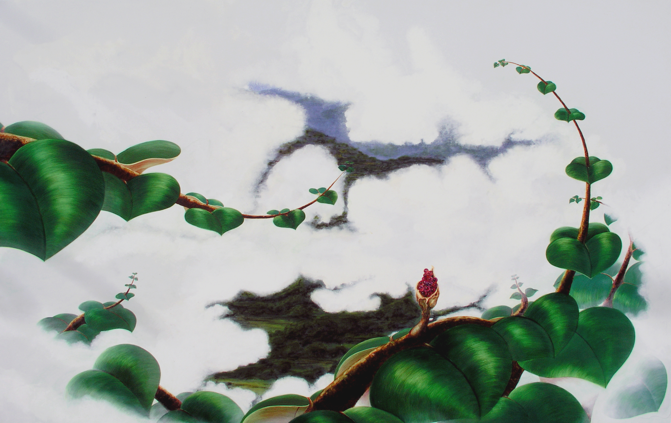 NUBES II (La canción de Peiwoh), Acrílico – tabla 110 x 178 cm.