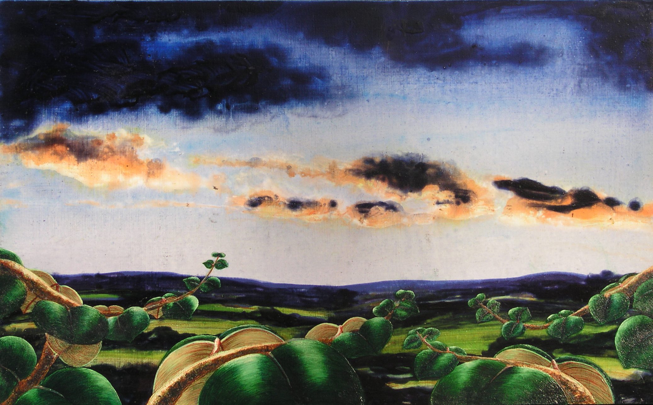 ATARDECER I (La canción de Peiwoh), Acrílico – tabla 25 x 41 cm.